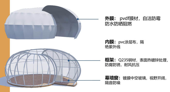 仿生造型獨特,居住體驗特別,打造網(wǎng)紅酒店,兼具設計感和私密性,完美融入野外,可與多種主題相結合,打造主題酒店,